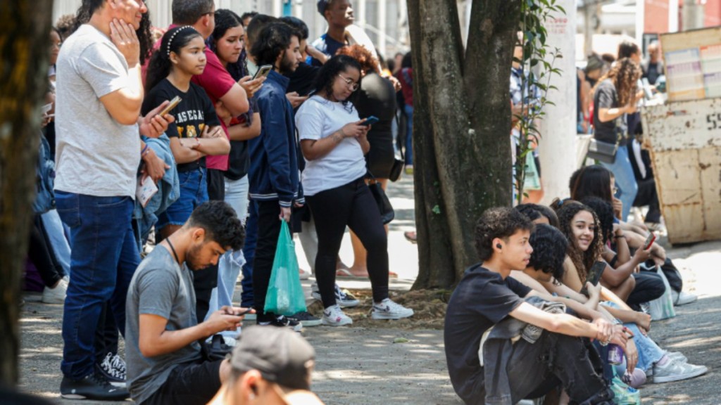 Estudantes e pais na Universidade Paulista no bairro do Paraíso