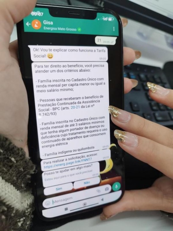 Em 2022, o cadastro na Tarifa Social passou a ser feito automático pelas distribuidoras de energia do país. “O principal problema é quando o benefício está no nome de uma pessoa e a conta de luz no nome de outra. Então, esse cliente só precisa informar que, naquele imóvel, tem um beneficiário do programa social. Para melhorar a comunicação com a população, a gente está entrando em contato com as prefeituras para fazer caravanas de cadastramentos no auxílio”, explica a supervisora comercial da Energisa Mato Grosso Fabiana Santana.