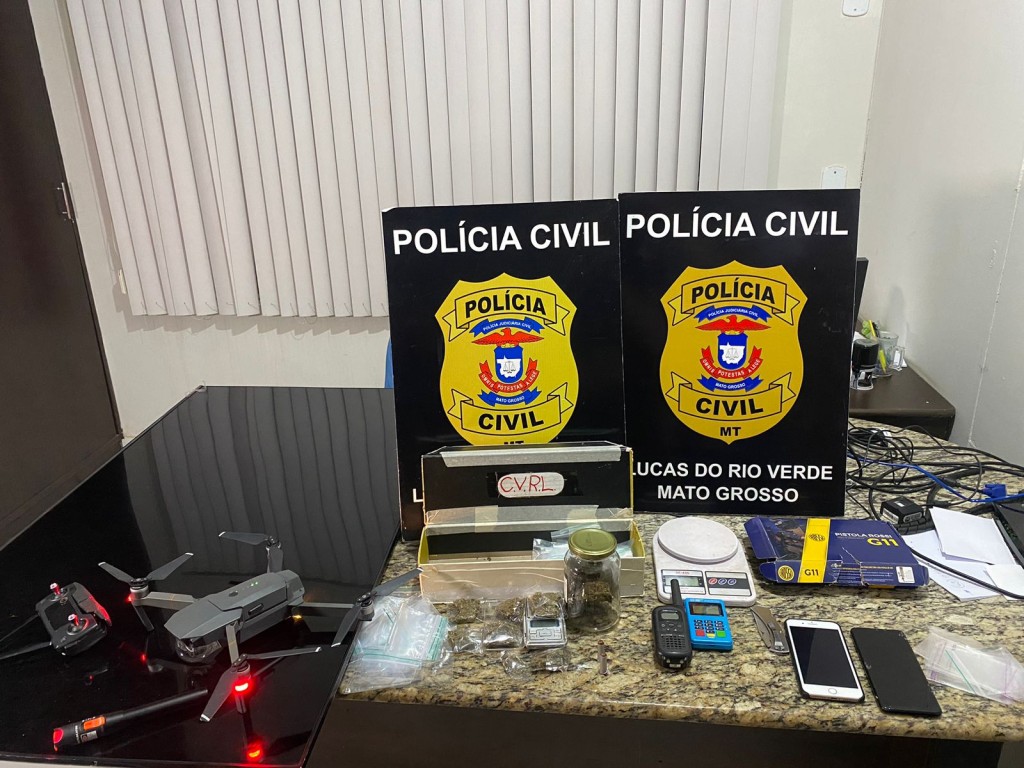 Duas pessoas envolvidas com crimes de tráfico de drogas e receptação de objetos de origem ilícita foram presas em flagrante pela Polícia Civil, nesta sexta-feira (03.05), durante investigações da Delegacia de Lucas do Rio Verde (304 km ao norte de Cuiabá).