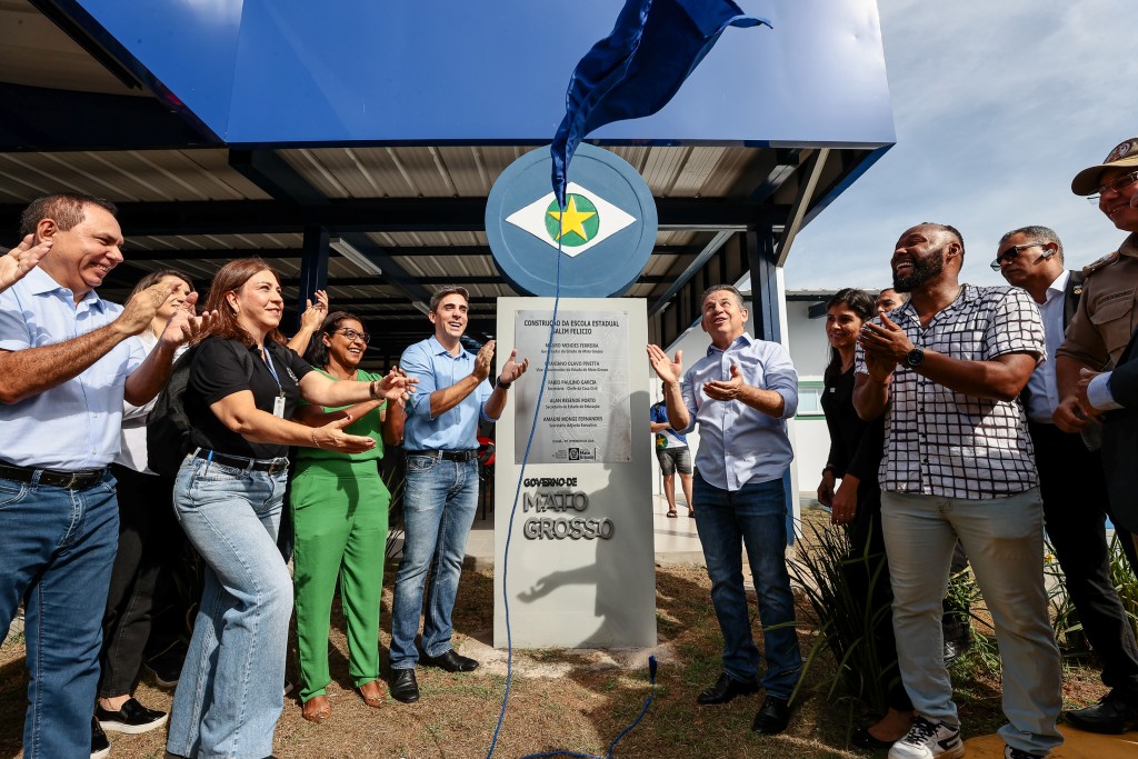 O governador Mauro Mendes e o secretário de Estado de Educação, Alan Porto, inauguraram, nesta sexta-feira (09.02), o novo prédio da Escola Estadual Salim Felício, no bairro Parque Real, em Cuiabá, que há 16 anos funcionava em um espaço alugado. Foram investidos R$ 8,2 milhões na construção da obra.