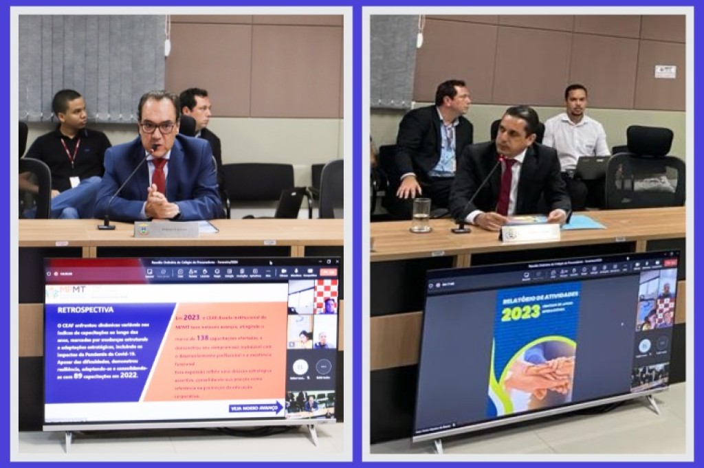 Nesta quinta-feira (01), durante a reunião do Colégio de Procuradores de Justiça, o coordenador da Escola Institucional, promotor de Justiça Antonio Sergio Cordeiro Piedade, apresentou aos procuradores de Justiça as principais atividades realizadas no decorrer de 2023.