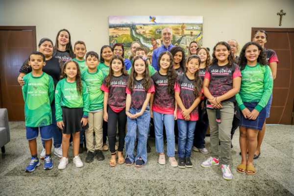 O prefeito em exercício Marcio Pandolfi e a secretária de Educação, Elaine Lovatel, recepcionaram a professora responsável Kátia Mundim, a diretora da escola, Simone Santana e os estudantes, nesta quinta-feira (24), para parabenizá-los.