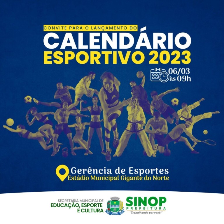 A Prefeitura de Sinop, por meio da Gerência de Esportes, lançará na segunda-feira (06) o calendário esportivo 2023 com atividades voltadas para mais de 15 modalidades. O evento será às 9h, no estádio municipal Massami Uriu – o Gigante do Norte.