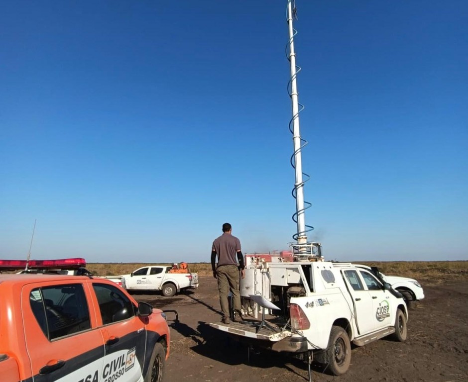 O Governo de Mato Grosso encaminhou para o Pantanal, na região de Poconé (a 104 km de Cuiabá), uma Estação de Rádio Base móvel (ERB) para reforçar o suporte de comunicação às equipes das forças de segurança que atuam no combate ao fogo.