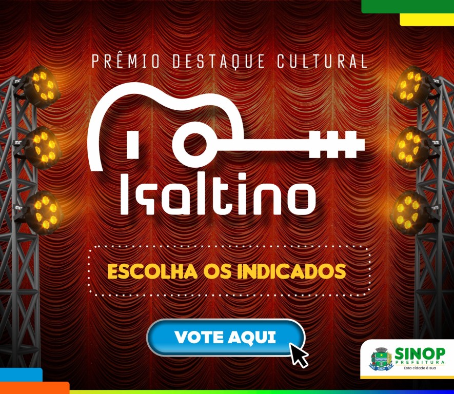 Estão abertas as votações para o 1º Prêmio Destaque Cultural Isaltino, que vai eleger os melhores artistas de Sinop, em oito categorias. A iniciativa é da Diretoria de Cultura e as votações são de forma online, até o dia 20 de dezembro. Os artistas indicados podem ser escolhidos pelo link https://sistema.sinop.mt.gov.br/Login/. Cada pessoa tem direito a votar com seu CPF, sendo que poderá votar em cada categoria, uma única vez. O evento de premiação dos vencedores será no dia 21 de dezembro, no Centro de Eventos Dante de Oliveira, às 19h.
