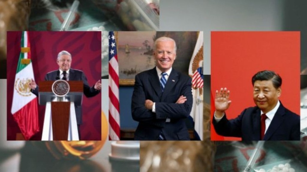 A administração do presidente Joe Biden acusa México e a China de facilitarem o tráfico da substância em seu território, alegando que a matéria prima para a produção do fentanil tem origem chinesa e produção mexicana. Ambos os governos negam envolvimento no caso e afirmam que veem a questão como um problema exclusivamente americano.