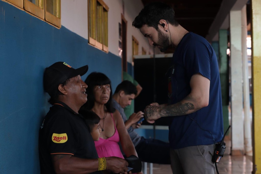 O Sr. Tarrurimã Juruna, de 65 anos, da aldeia indígena Kamain foi acompanhado por toda família para receber os atendimentos. Sua esposa, Gaisõto Suya, 64 anos, a filha Madayalu Juruna, 29 anos, aproveitaram a vinda da expedição para regularizar o título de eleitor e carteira de identidade, plastificar os documentos. Além disso, também trouxeram o pequeno Maycadê Juruna, de seis anos e filho de Madayalu para brincar e participar das dinâmicas.