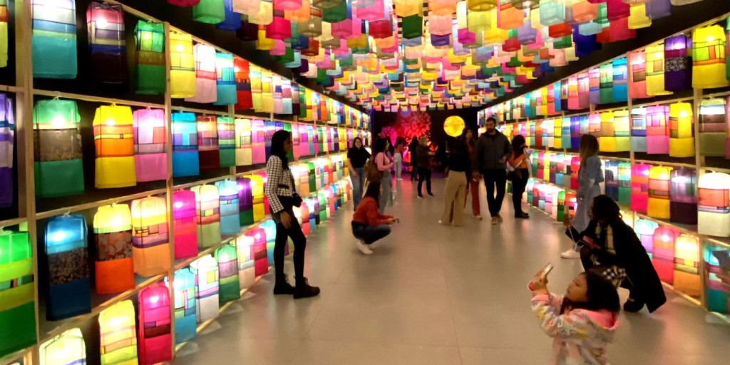 Para essa exposição em São Paulo foi criado um túnel com cerca de 1,2 mil lanternas coloridas, que culmina com uma lua cheia e extremamente iluminada onde se forma uma fila para fotos. “Elas [as lanternas] representam a luz, a esperança e a união, e são um símbolo icônico da tradição do nosso país”, disse Cheulhong Kim, diretor do CCCB, em nota.