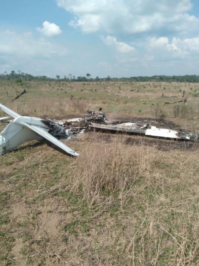 Segundo a polícia, o veículo não tinha plano de voo e entrou no espaço aéreo do Brasil pela fronteira com a Bolívia, mas foi interceptado pela Força Aérea Brasileira (FAB). Em seguida, o piloto tentou fazer um pouso forçado em um campo aberto do município, mas acabou perdendo o controle e caiu.