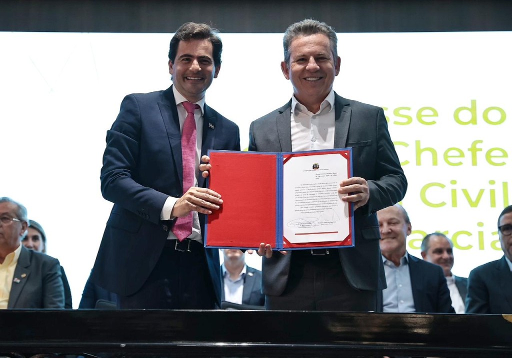 O governador Mauro Mendes parabenizou Fábio Garcia pela posse e ressaltou a competência do novo secretário.