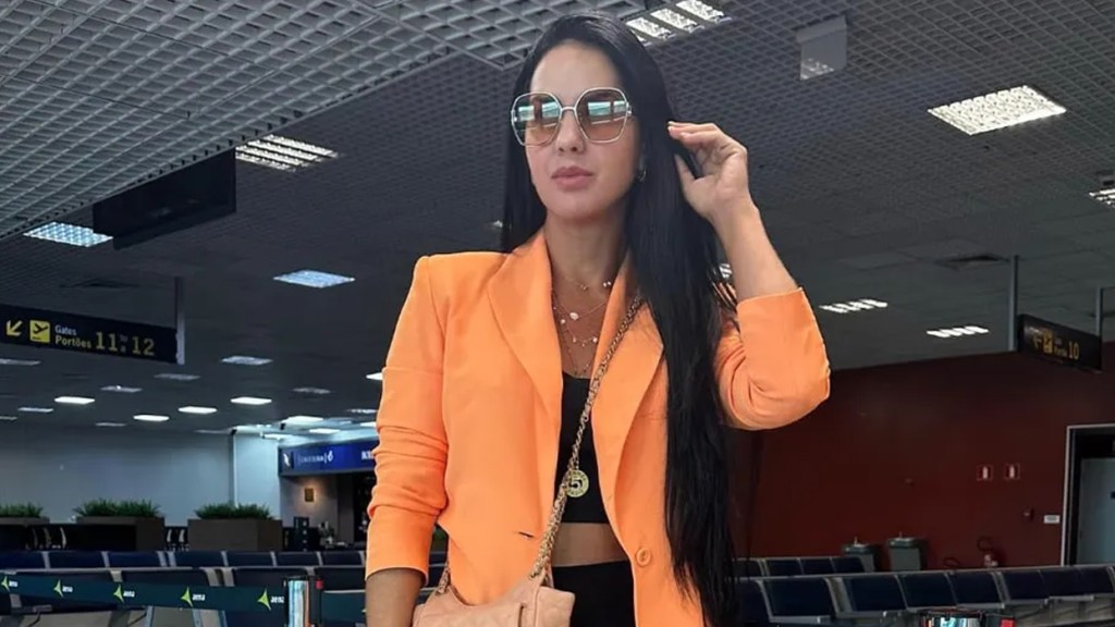 Sem revelar o destino da viagem, a noiva de Zezé Di Camargo deu um show de estilo e jovialidade enquanto passeava pelo aeroporto.