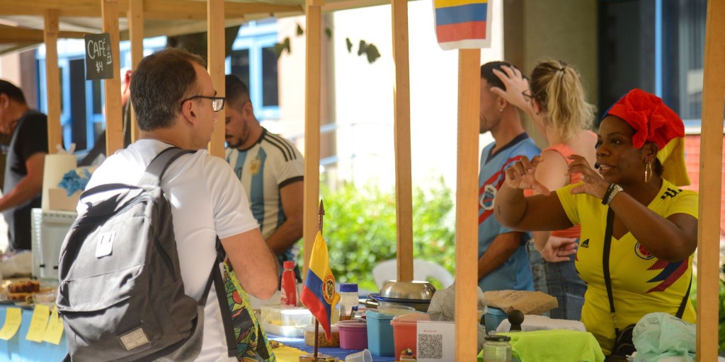 São 20 barracas com empreendedores de diversas nacionalidades. Os expositores são de países africanos e latino-americanos como Angola, Argentina, Chile, Colômbia, Congo, Cuba, Senegal, Peru e Venezuela, entre outras nacionalidades.