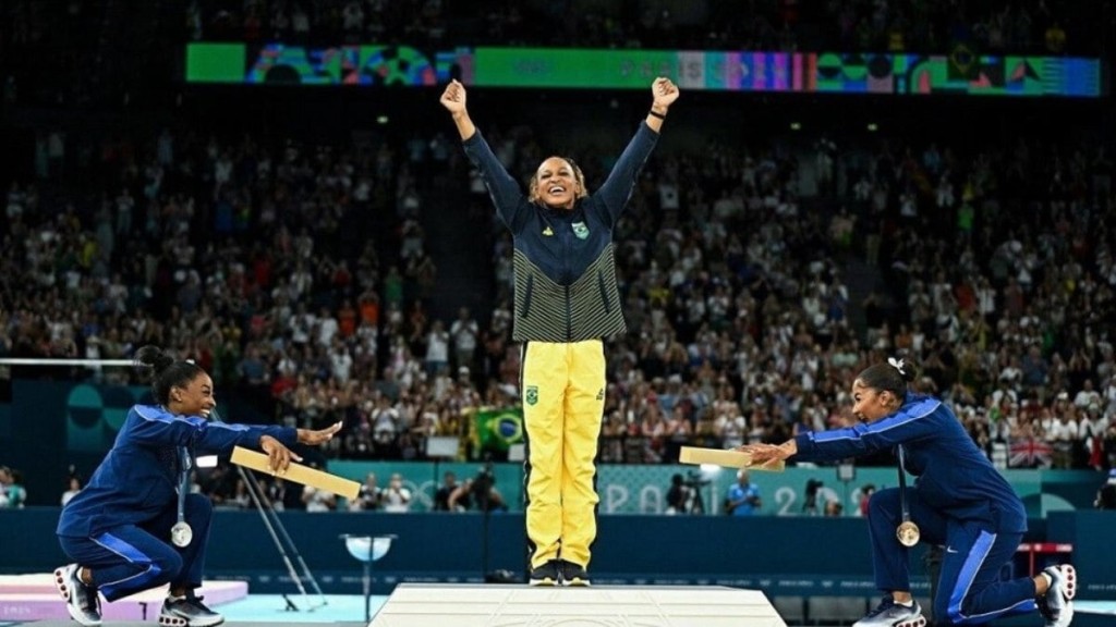 Como se ela ainda precisasse provar algo para alguém, nesta segunda-feira (5), Rebeca Andrade alcançou mais duas conquistas notáveis em sua carreira. A ginasta se tornou a maior medalhista olímpica da história do Brasil ao ganhar o ouro na final do solo nas Olimpíadas de Paris 2024. Aos 25 anos, ela conquistou sua sexta medalha olímpica, sendo a quarta apenas na capital francesa, além de estabelecer um recorde de pódios em uma mesma edição olímpica.