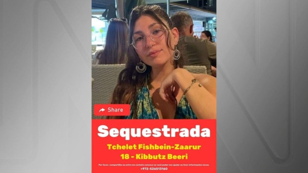 Tchelet Fishbein-Zaarur, de 18 anos, é filha de uma brasileira chamada de Celeste pela família e está entre os reféns sequestrados pelo Hamas, de acordo com informações da embaixada de Israel no Brasil.