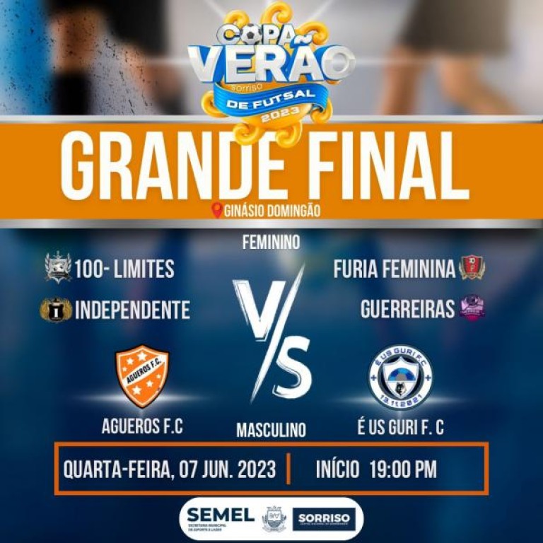 “Convidamos a todos os sorrisenses a comparecerem ao Ginásio Domingão nesta quarta-feira e torcer pelo seu time. Tenho certeza de que serão partidas emocionantes nesta grande final da Copa Verão” frisou Júnior Brandão, secretário de Esporte e Lazer.