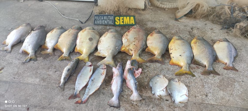 Entre as espécies recolhidas estavam Pacu, Piraputanga, Piava, Pacu Peva e Palmito. Também foram apreendidos um freezer utilizado para armazenar os peixes e duas tarrafas, material de pesca proibido utilizado para pesca predatória.