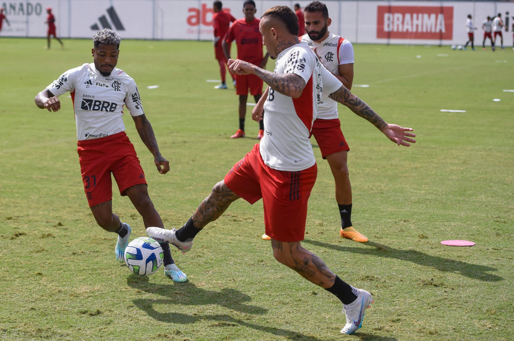 O Flamengo realizou mais um treino na manhã desta segunda-feira (15), no Ninho do Urubu, visando o clássico diante do Fluminense, que será disputado amanhã (16), às 21h, no Maracanã. O confronto é o de ida das oitavas de final da Copa do Brasil.