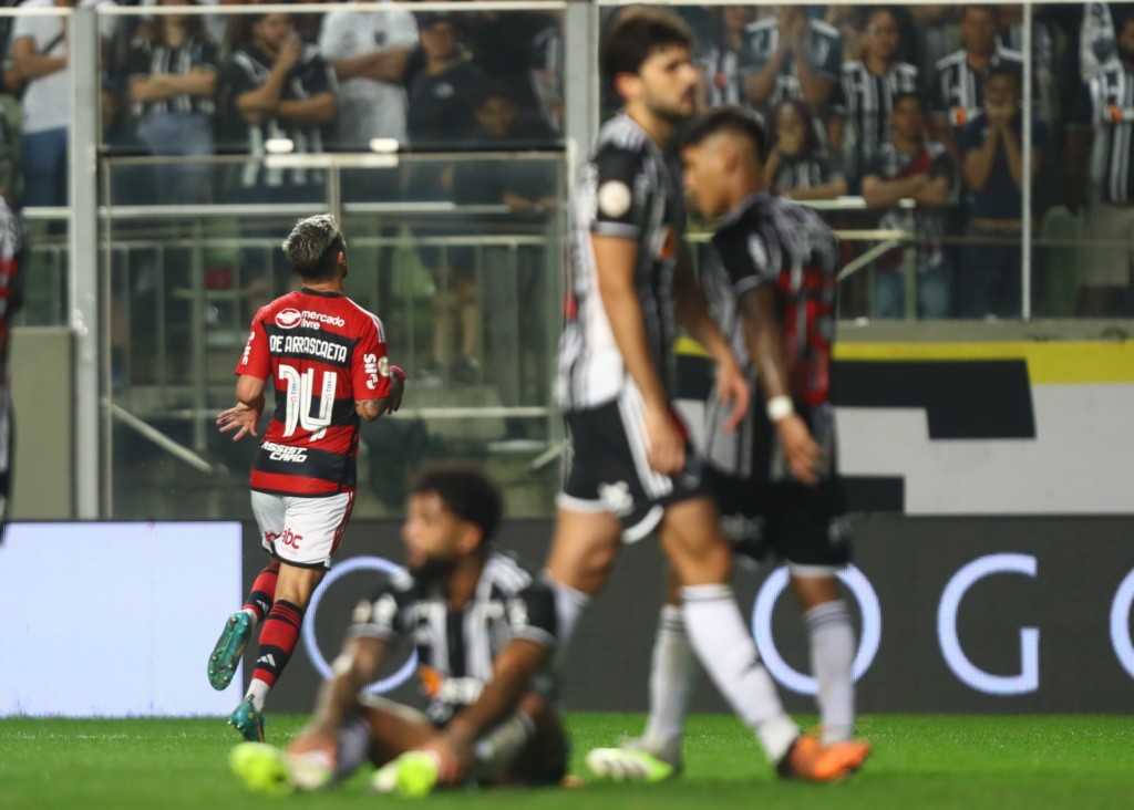 Com Arrascaeta no banco, Gerson jogou mais avançado e comandou as ações no Flamengo, enquanto o Atlético-MG apostou em jogadas de velocidade com Hulk e Saravia.