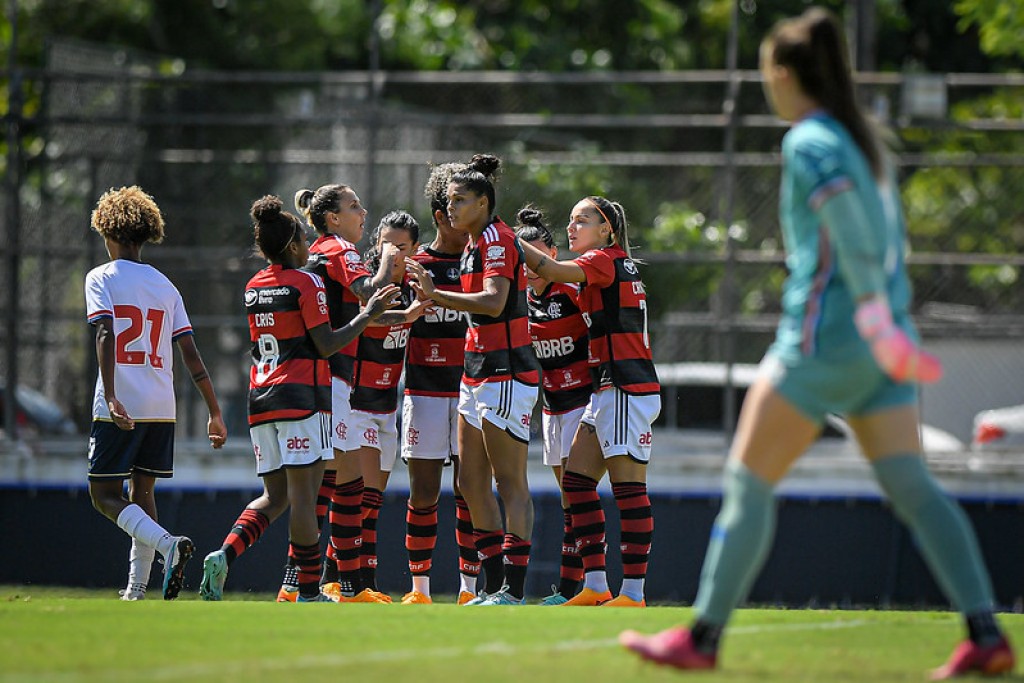 Na volta do intervalo, a equipe rubro-negra continuou ocupando o campo de ataque e trocava passes para tentar abrir espaço na defesa do Bahia. Aos 11’, o Mengão chegou com perigo. Jucinara cruzou na área e Crivelari finalizou de primeira, mas a bola foi por cima da meta.