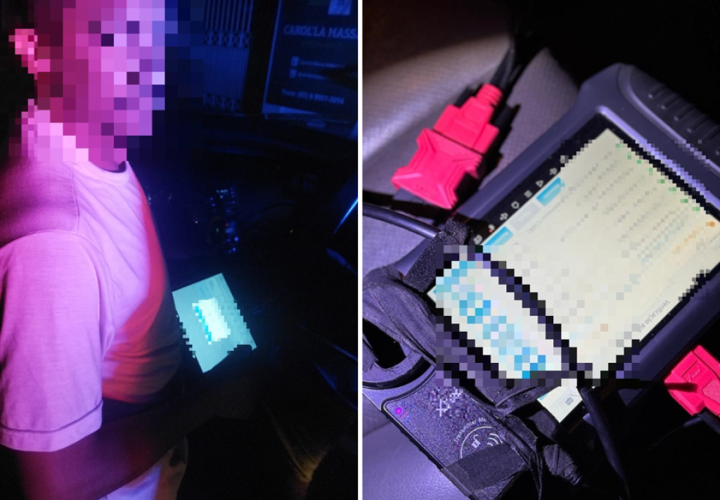 Ao perceber a presença das equipes, o motorista tentou fugir, porém, foi detido minutos depois. Os militares fizeram uma revista e encontraram com a mulher um controle inibidor de travamento de veículo (alarme) e uma chave codificadora. Também foi checada a ficha criminal de cada um dos suspeitos e os policiais identificaram que o motorista do HB20 era foragido da Justiça e tinha passagens por furto, receptação e homicídio.