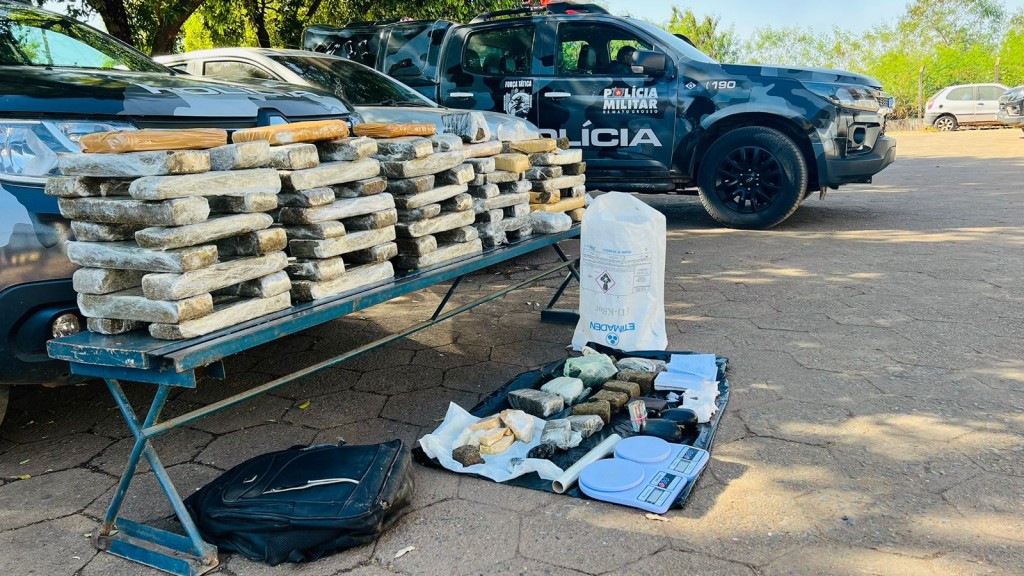 Em seguida, os militares se deslocaram para uma chácara na região da Ponte de Ferro onde encontraram dez tabletes de maconha e para uma casa no bairro Bela Vista, onde apreenderam diversos tabletes de maconha, pasta base de cocaína e skank, além de outros materiais para comercialização das drogas. Os três suspeitos e todo material ilícito apreendido foram conduzidos à delegacia para registro do boletim de ocorrência e demais providências cabíveis.