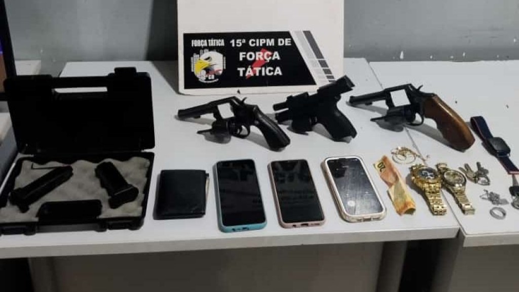 Na busca veicular, foram localizadas três armas de fogo, sendo uma pistola calibre .380 e dois revólveres calibre .38. Questionados sobre o armamento, o suspeito que estava na motocicleta afirmou ser o proprietário do material e que iria realizar a venda dos objetos.