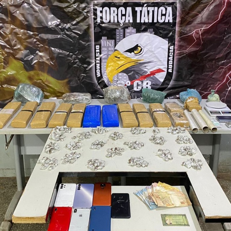 Equipes da Força Tática do 2º Comando Regional prenderam dois homens, de 38 anos e 18 anos, e apreenderam uma adolescente de 13 anos por tráfico ilícito de drogas e corrupção de menores, nesta segunda-feira (09.10), em Várzea Grande. Com a quadrilha, a PM apreendeu 20 quilos de maconha, celulares e R$ 756 em dinheiro.