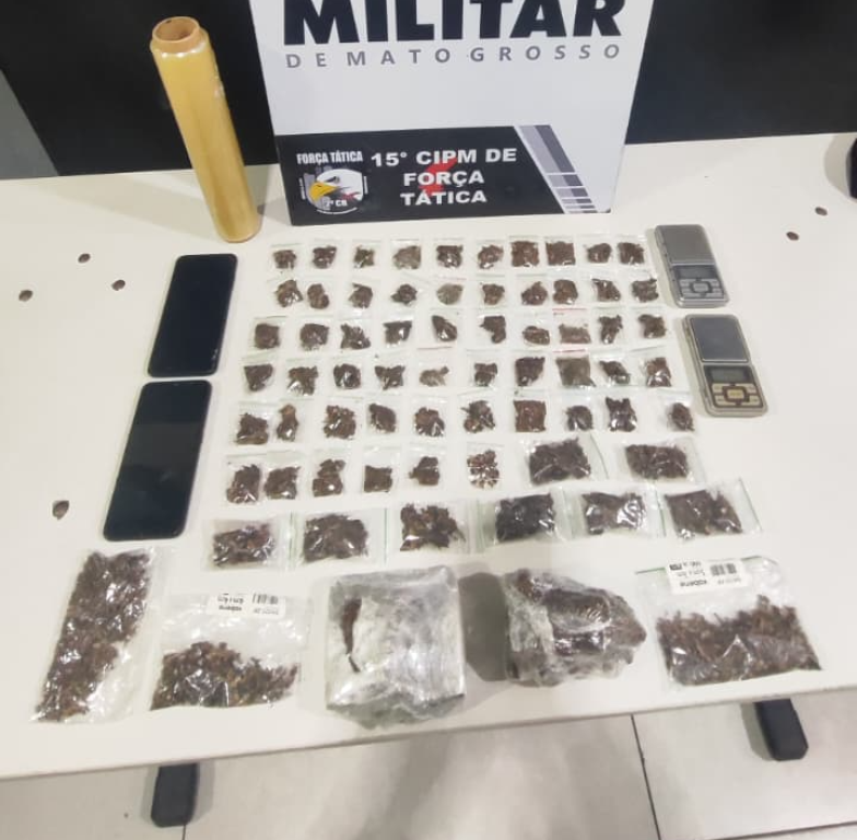 Policiais militares da Força Tática do 2º Comando Regional apreenderam, nesta quinta-feira (12.2), 112 porções de entorpecentes e prenderam dois homens suspeitos por tráfico ilícito de drogas, em duas abordagens, em Várzea Grande.