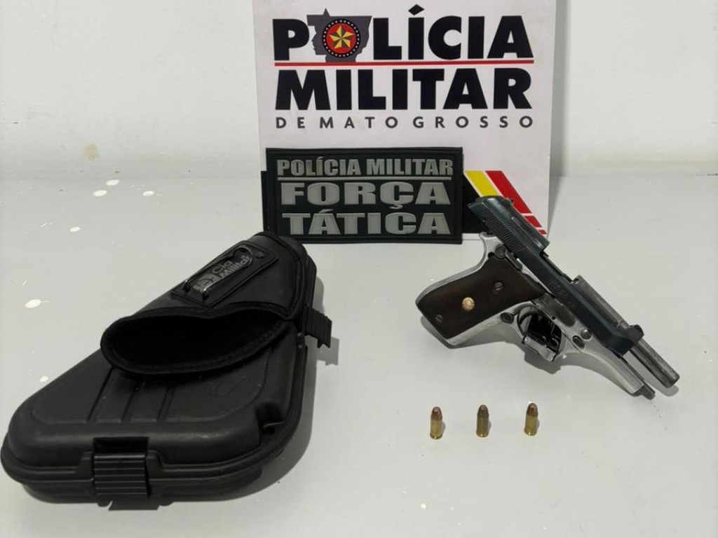 Policiais militares da Força Tática do 7º Comando Regional prenderam um homem, de 22 anos, por porte ilegal de arma de fogo, na noite desta quinta-feira (31.10), em Tangará da Serra. O suspeito foi preso depois de ser flagrado com uma pistola dentro de um ônibus de transporte intermunicipal.