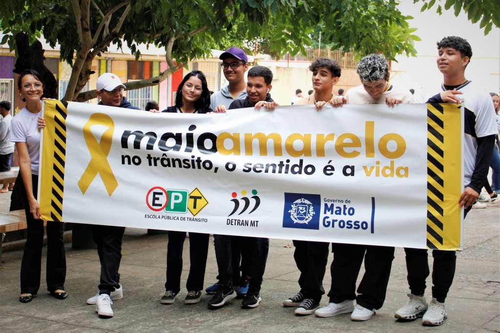 Como parte da programação da campanha Maio Amarelo 2023, o Departamento Estadual de Trânsito (Detran-MT), em conjunto com outras forças de segurança pública, está promovendo um circuito de palestras educativas ao longo desta terça-feira (30.05) na Escola Estadual Liceu Cuiabano D. Maria de Arruda Muller, em Cuiabá.