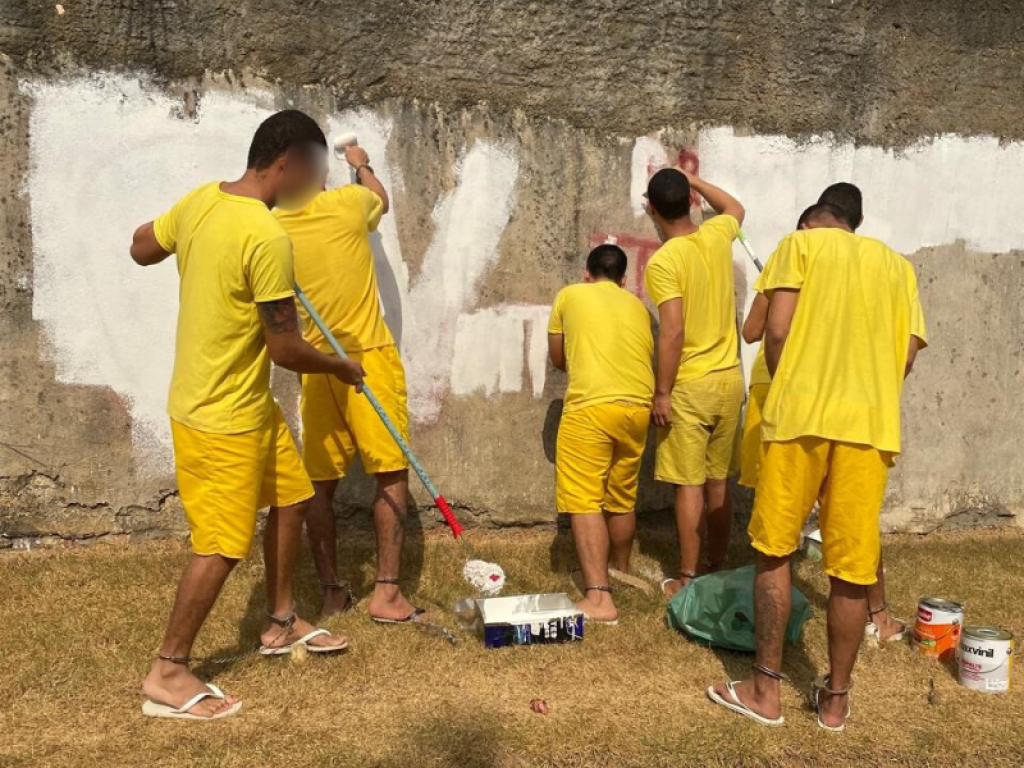 Forças de segurança utilizam mão de obra de reeducandos para remover pichações