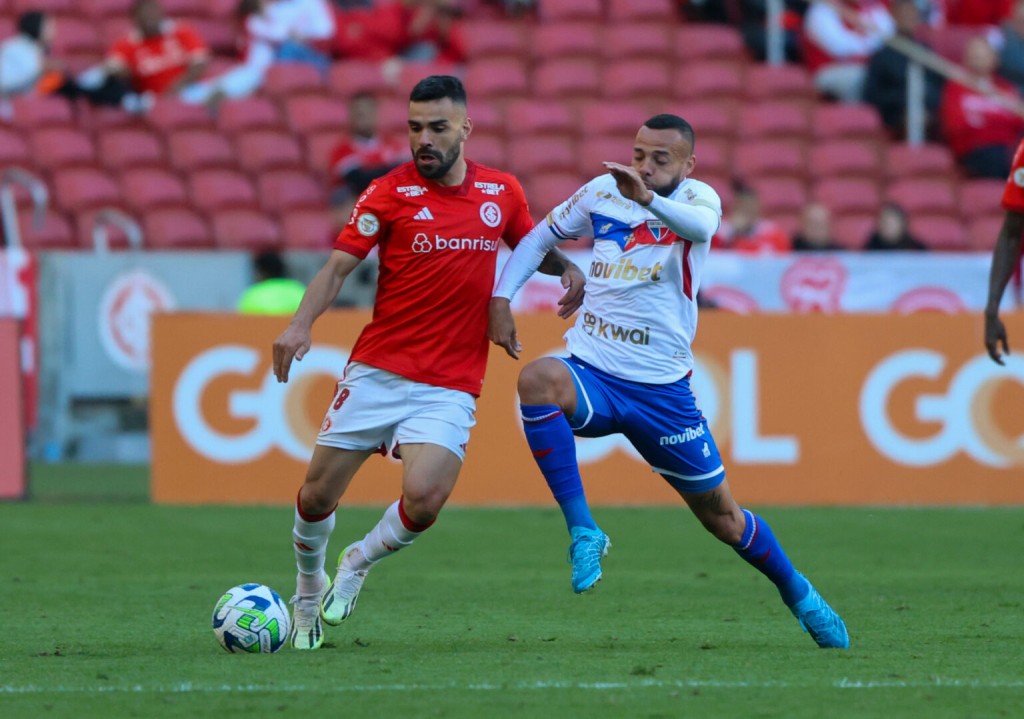 A posse de bola da alternativa escalação colorada superou a casa dos 70%, mas os espaços no ataque, consequência da postura retraída do Fortaleza, não apareciam em quantidade suficiente para o estabelecimento de verdadeira pressão vermelha. Na última chance que criou antes do intervalo, o Clube do Povo voltou a esbarrar no travessão, endereço de falta bem cobrada por Mauricio.