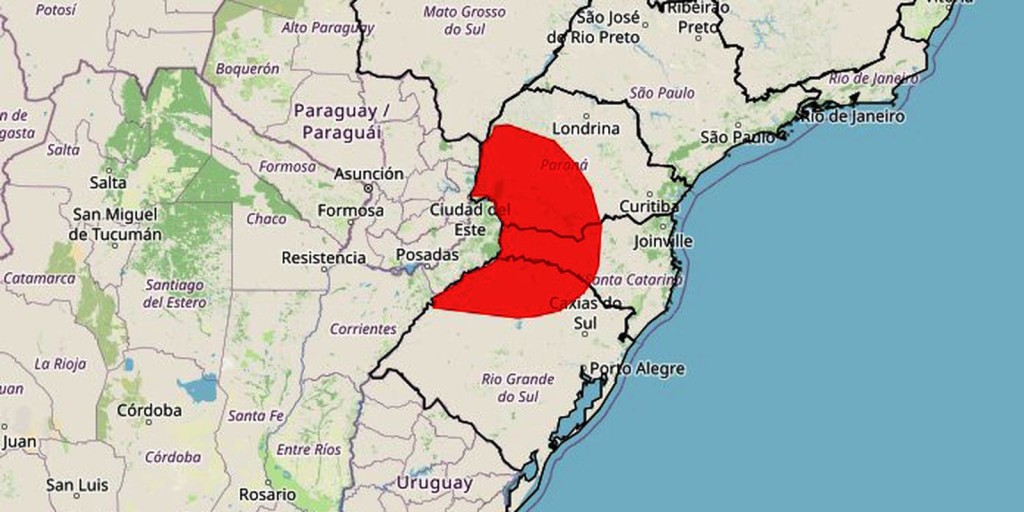 O Instituto Nacional de Meteorologia (Inmet) emitiu alerta vermelho para áreas do norte do Rio Grande do Sul, centro-oeste de Santa Catarina e sudoeste do Paraná, devido à previsão de chuva superior a 100 milímetros (mm) em 24 horas. Até a noite deste sábado (4), a previsão é que as chuvas passem de 200 mm nessas áreas.