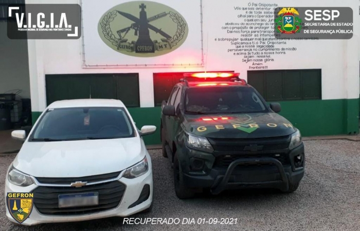 Policiais do Grupo Especial de Fronteira (Gefron) recuperaram um veículo Ônix de cor branca, pertencente a uma locadora de veículos antes que o carro ingressasse na Bolívia. A ação faz parte da operação Hórus/Vigia, na região de fronteira.