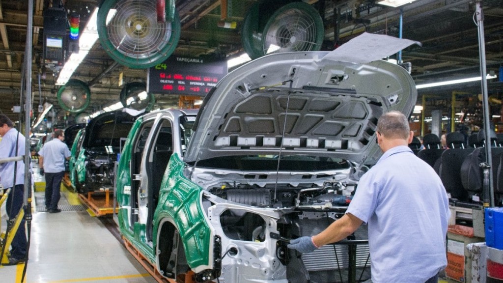 Linha de montagem da fábrica da General Motors em São José dos Campos (SP)