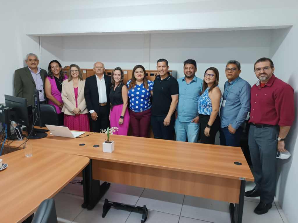 #ParaTodosVerem – Esta matéria possui recursos de texto alternativo para promover a inclusão das pessoas com deficiência visual. Primeira imagem: Mostra os membros da comitiva, onze pessoas, seis homens e cinco mulheres. Eles estão em pé dentro de uma sala.