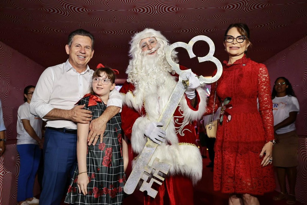 O governador Mauro Mendes e a primeira-dama Virginia Mendes inauguraram, na noite desta quinta-feira (14.12), o Natal Abençoado do SER Família.