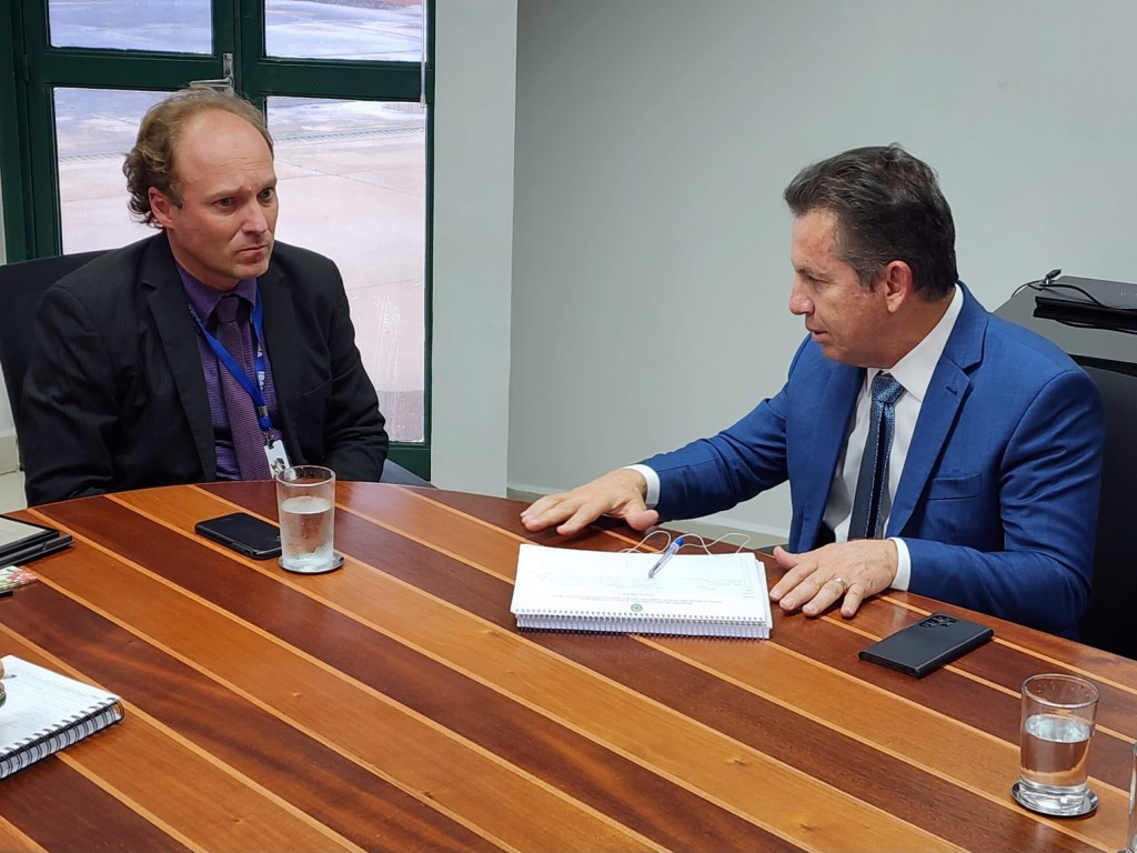O governador Mauro Mendes se reuniu, nesta terça-feira (02.04), em Brasília, com o presidente do Instituto Brasileiro do Meio Ambiente e dos Recursos Naturais Renováveis (Ibama), Rodrigo Agostinho, para solicitar a autorização das obras que vão dar a solução definitiva no trecho conhecido como Portão do Inferno, na MT 251, entre Cuiabá e Chapada dos Guimarães.