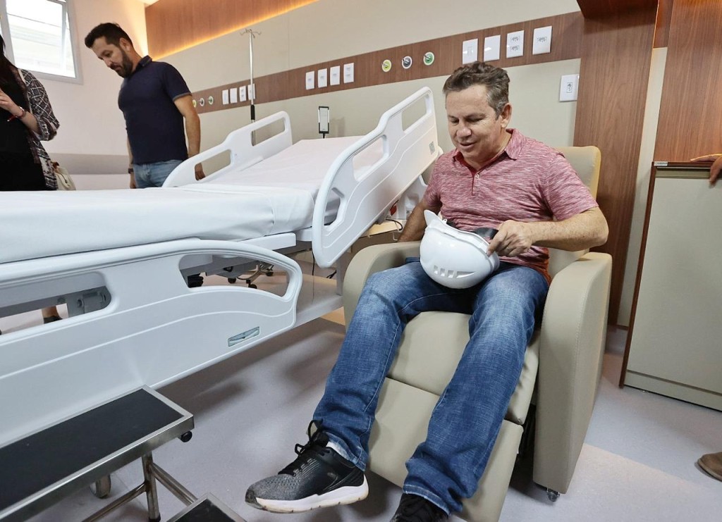 “Aqui nós temos 32 mil metros quadrados. O prédio original era de 9 mil metros quadrados, portanto, fizemos uma grande ampliação. Vamos entregar, se Deus quiser, nos próximos meses, um hospital que vai ser, disparado, o maior e o melhor de Mato Grosso”, relatou ele, que também vistoriou a obra do Centro Logístico de Abastecimento e Distribuição (Celad).