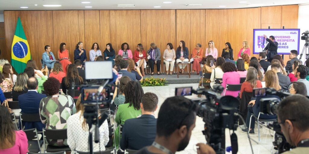Durante sua fala no encontro, a primeira-dama Janja destacou que diminuir o feminicídio, assim como acabar com a fome são “obsessões” do presidente Lula.