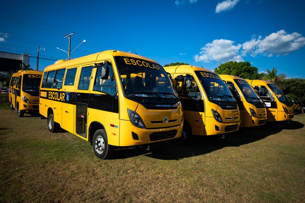 A Secretaria de Educação de Mato Grosso (Seduc-MT) entregou ao município de Campo Verde, nesta quarta-feira (03.07), oito ônibus escolares, 240 Chromebooks, 92 notebooks, 12 Smart TVs e oito gabinetes de recarga para fortalecer a educação no município. Os investimentos passam de R$ 4 milhões. O evento contou com a participação da primeira-dama do Estado, Virginia Mendes. Foto: Emanuele Ardengui