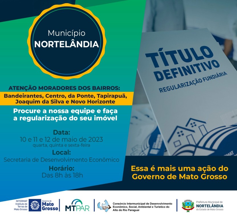 Essa iniciativa é feita por meio da MT Par e do Instituto de Terras de Mato Grosso (Intermat).