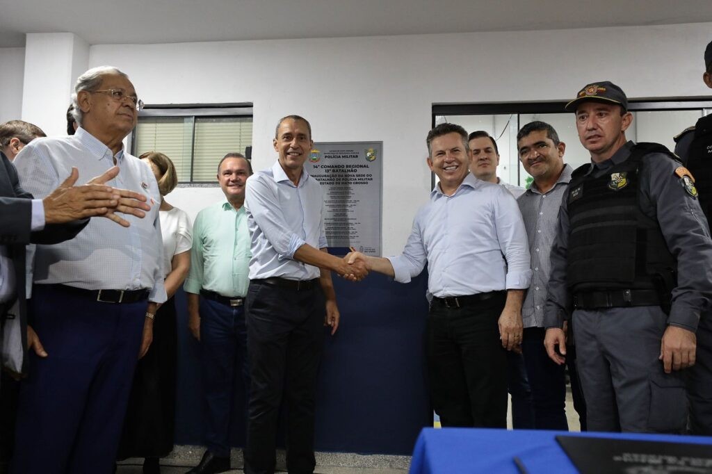 O governador Mauro Mendes entregou, nesta terça-feira (20.03), o novo prédio do 13º Batalhão da Polícia Militar, lançou o programa de segurança pública Vigia Mais MT e visitou stands da feira agropecuária Show Safra em Lucas do Rio Verde (a 332 km de Cuiabá).