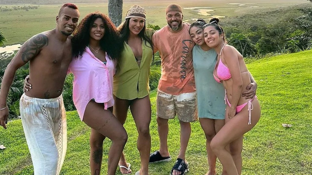 A ex-dançarina está em Trancoso, na Bahia, com Belo, seu marido e alguns amigos. Na sequência de fotos, ela apareceu posando poderosa de biquíni azul, uma blusa verde, lenço na cabeça, e simulava estar segurando o sol, enquanto ele se punha.