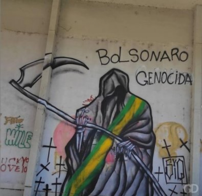 O grafiteiro Jean Siqueira passou por momentos de tensão na manhã desta quinta-feira (3). Ele foi ameaçado por um homem armado após ter feito um grafite em um casarão abandonado no centro de Cuiabá. A arte trazia a expressão “Bolsonaro Genocida”, o que irritou o homem. Após as ameaças Jean registrou um boletim de ocorrência.