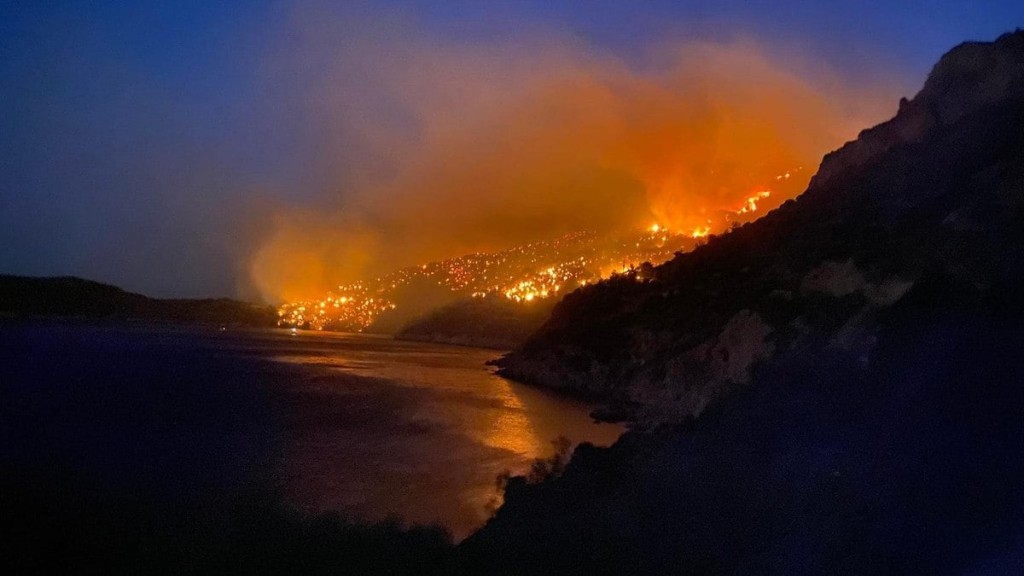 O incêndio que devasta a ilha de Rhodes, ponto turístico na Grécia, no mar mediterrâneo nos últimos cinco dias obrigou o país a evacuar milhares de turistas da região.