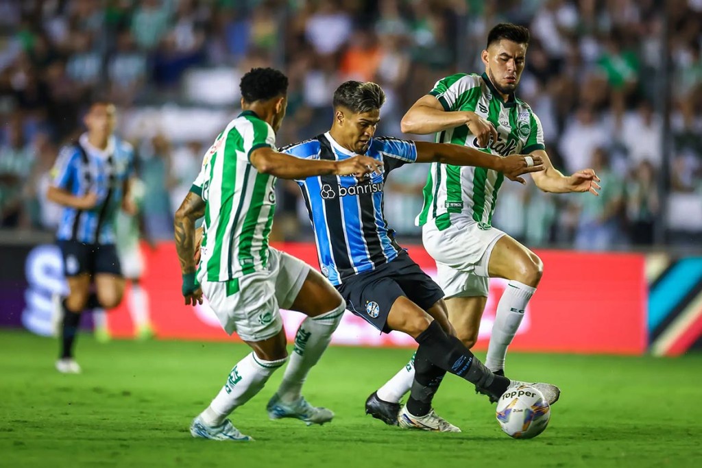 A primeira etapa foi marcada por um jogo equilibrado, com as duas equipes criando poucas chances de gol. O Grêmio teve maior posse de bola, mas encontrou dificuldades para furar a defesa do Juventude, que se mostrou bem organizada.