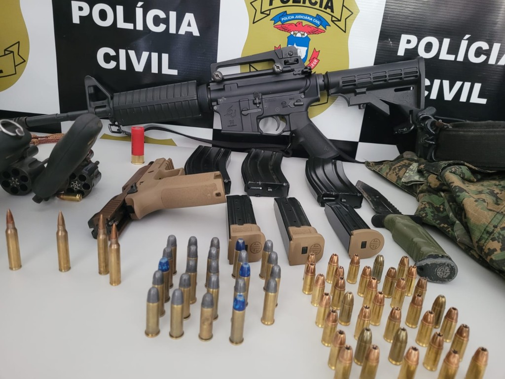 Com dois deles foram encontrados dois revólveres de calibre 38 e munições. Outro suspeito estava armado com uma pistola 320 e três carregadores municiados. Um deles se apresentou como proprietário de uma arma longa, fuzil de calibre 556, que estava no banco do veículo e municiada, além de carregadores.