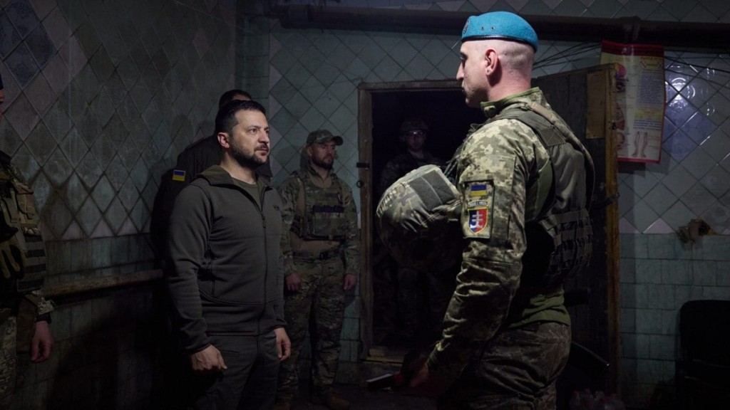 O presidente Volodymyr Zelensky visitou as posições de linha de frente das Forças Armadas da Ucrânia na última semana.