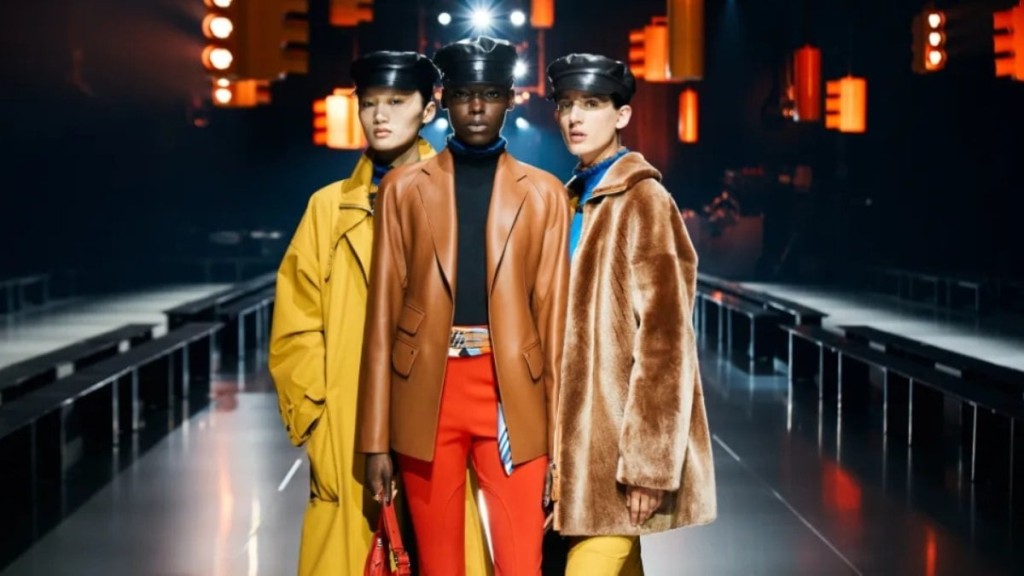 O outono-inverno 2024 eclético, plural e otimista tem contraste de opostos e silhuetas elegantes. Cores como amarelo mostarda, vermelho, azul, preto, marrom, bege e branco são harmonizadas em diferentes tecidos, como couro, cashmere, seda e malha.